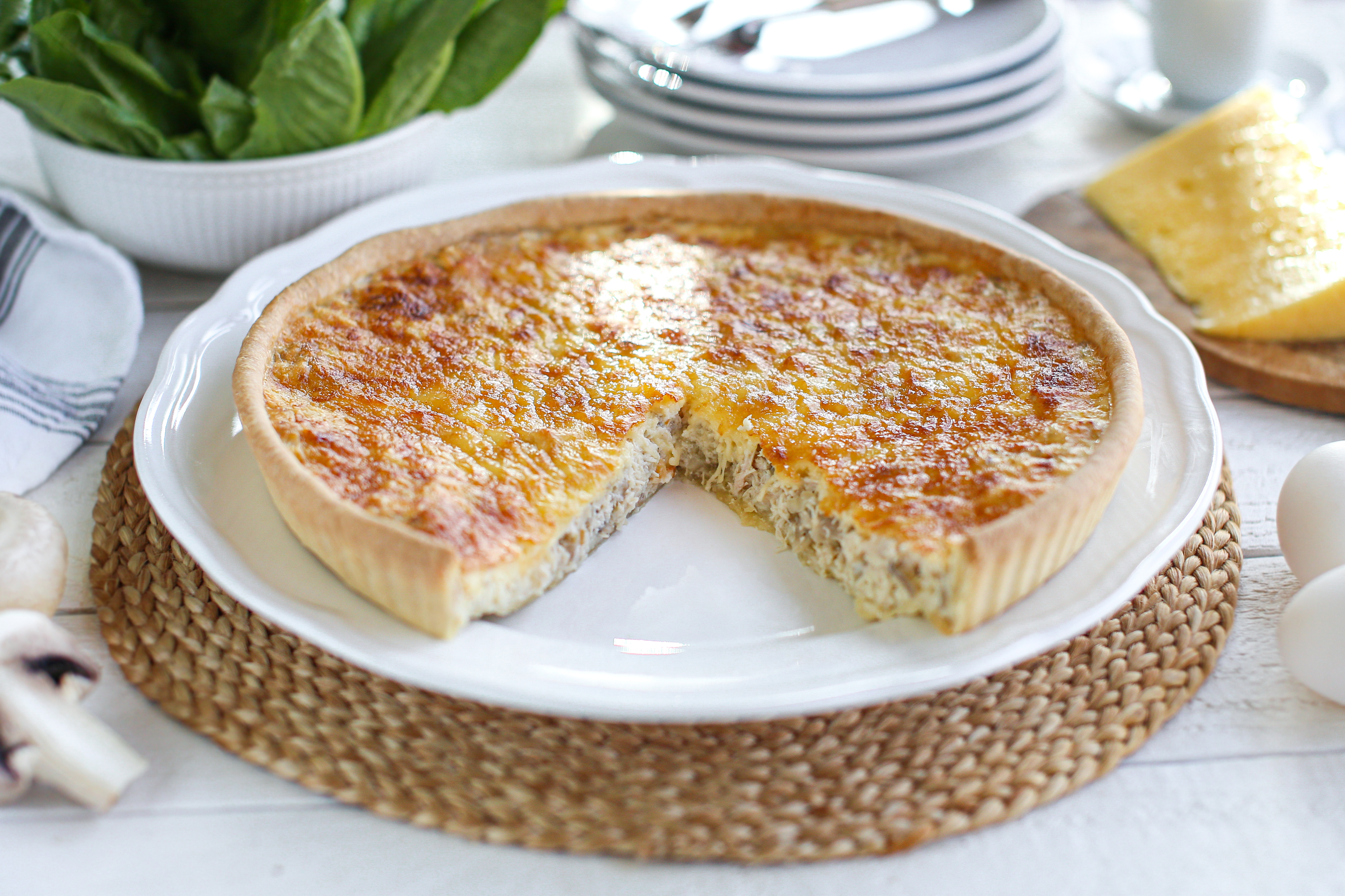 мука в/с, маргарин столовый, сметана, яйцо куриное, соль, филе куриное, лук репчатый, грибы вешенки свежие, приправа (куриный бульон), молоко цельное, сыр твердый.